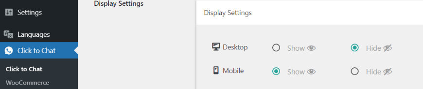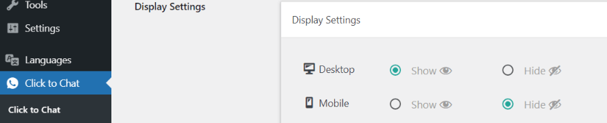To display only on Desktop: At ‘Display Settings’ -> select ‘Show’ option in Desktop’ to display the styles on Desktop