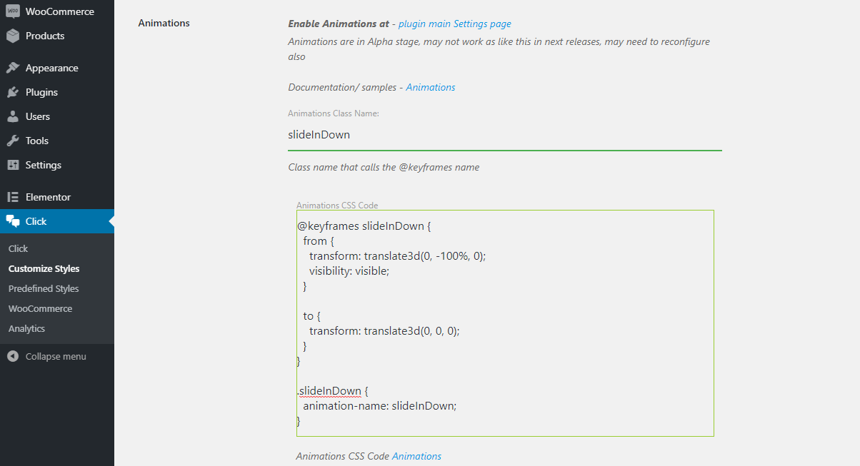 Change “Animation Class name”, “Animation CSS code”.