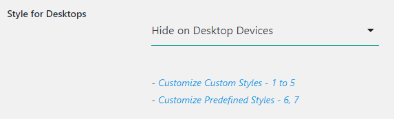 To Hide the style on the Desktop devices, by using the shortcode – ‘hide_desktop’ ( since version 1.5 )